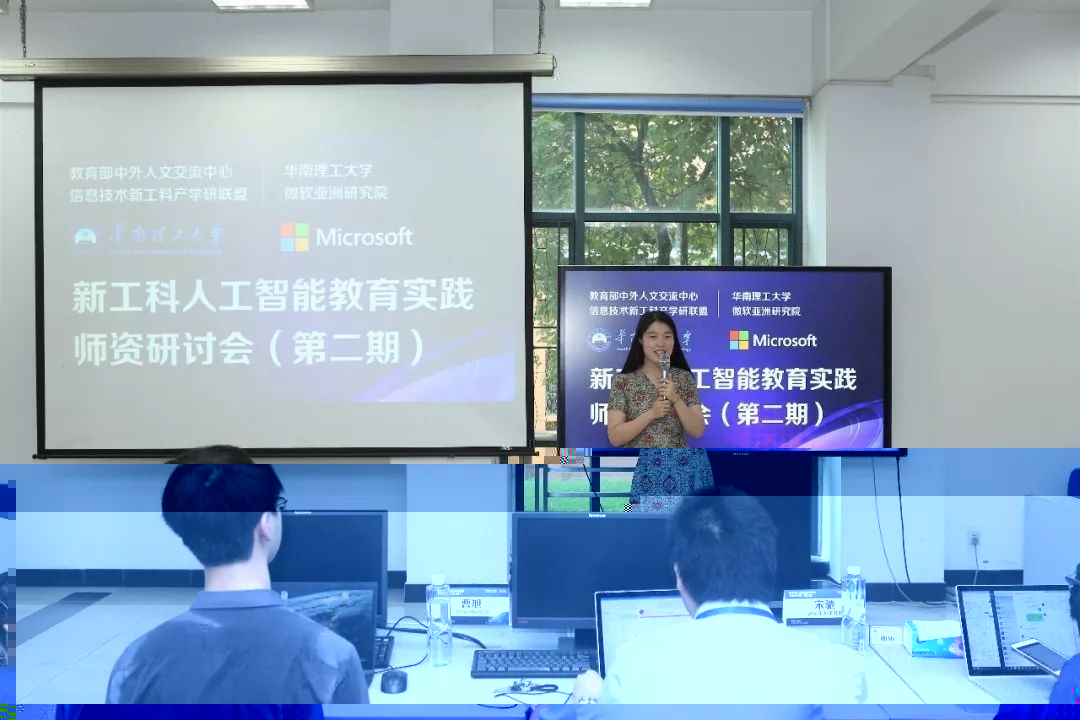 在此背景下,我院教師劉敏博士于2018年7月25日至28日赴廣州參加了第二期新工科人工智能教育實踐師資研讨會。本次研讨會由教育部中外人文交流中心、信息技術新工科産學研聯盟共同指導,新工科聯盟人工智能教育工作委員會擔任主辦方,華南理工大學與微軟亞洲研究院聯合承辦。全國多所高校的教師積極參與,與資深研究員、行業專家面對面交流人工智能領域的教育教學經驗,探讨未來人工智能應用案例在高等教育教學中的實踐問題。