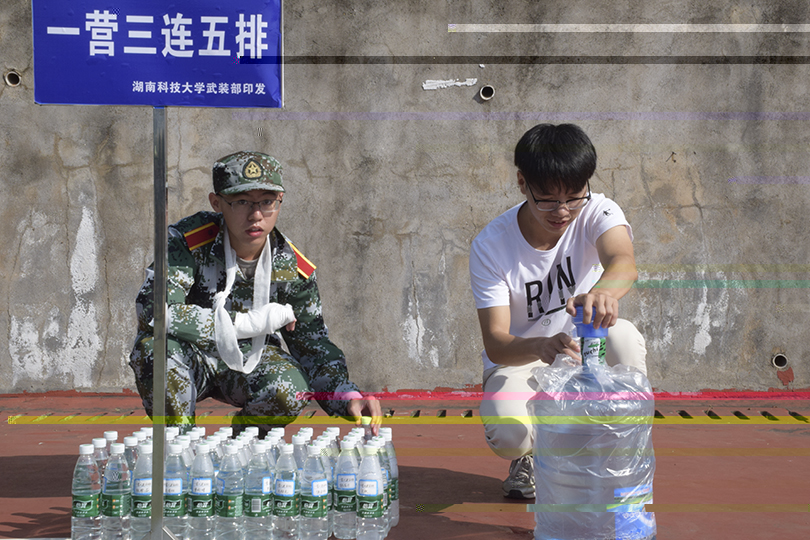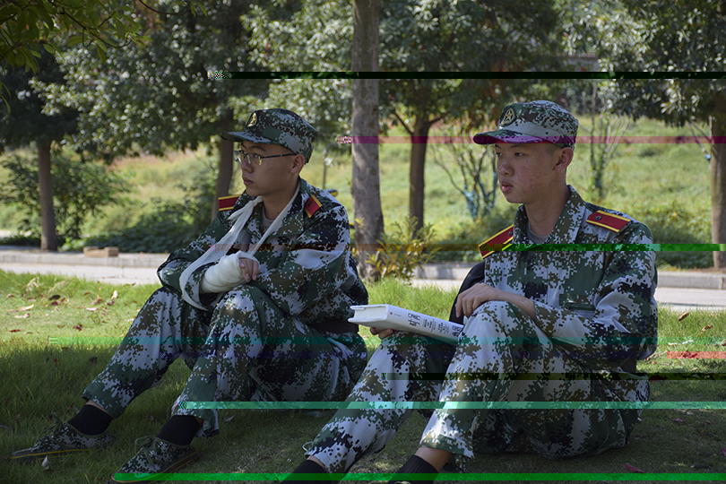 “因受傷我無法繼續和他們一起訓練,心裡感到十分遺憾,軍訓是一次很好的鍛煉機會,即使知道很累,但我還是想去嘗試一下。”信息安全一班的李焌旗談起自身的傷不由地感慨道。古語有雲:“天将降大任于斯人也,必先苦其心志,勞其筋骨,餓其體膚,空乏其身,行拂亂其所為,所以動心忍性,曾益其所不能。”看到操場上的同袍們鬓角被汗水打濕,仍咬牙堅持訓練的時候,他們心中也有着絲絲悸動。“再累也想去體驗,高中時參與過軍訓,當時的場景仍曆曆在目,有點懷念那時的感覺。”信息安全一班的魏雪因心律不齊無法參加軍訓,眼中流露出遺憾。