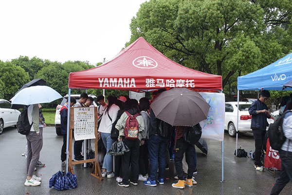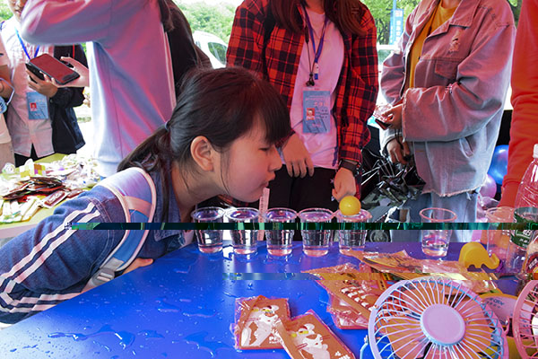活動伊始,豐富多樣的擺點小遊戲吸引了不少過路同學的眼球,連綿不斷的小雨也未能阻擋同學們參與活動的熱情。擺點現場設有考驗思維能力和動手能力的“魔力轉圈圈”,需要用嘴将乒乓球吹進杯子中的“歡樂彈彈球”以及挑戰心跳與合作的“背對背擁‘爆’”。其中“歡樂彈彈球”備受同學們青睐,“背對背擁‘爆’”更是引爆了全場,歡聲笑語與氣球的爆炸聲夾雜在一起,現場氣氛十分活躍。