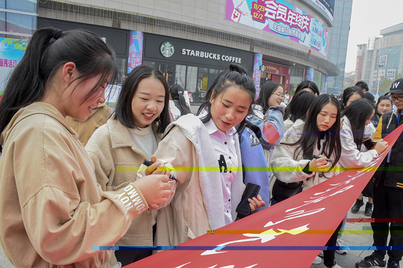 寒風飒飒冷徹骨,但衣着單薄的志願者們并沒有熄滅心中的熱情。活動伊始,我院權益保障部的委員們分為兩個小隊,在華隆廣場分兩路向過路的市民們宣傳艾滋病知識。同時,志願者裝扮成艾滋病患者,舉着“能給我一個擁抱嗎”的牌子向市民們索求擁抱。起初,過往的行人紛紛駐足觀望,但并沒有人敢于走上去和他們互動或者交流。直到一位王姓女士帶着她尚在學步的孩子打破了僵局,她上前大大方方地給了志願者們一個擁抱,還讓孩子将手中的紅絲巾遞給了志願者。“我知道擁抱和握手都不會傳染艾滋病,一個小小的擁抱就能幫助和鼓勵他人,我很樂意這樣做。”王女士指着橫幅說道,“而且我們不應該歧視艾滋病患者,因為足夠有愛才能足以無艾。”看到這幅暖心的畫面後,市民們陸陸續續地上前主動擁抱志願者,并在橫幅上簽下了自己的名字,一份份小小的關懷,不僅溫暖了在場的志願者們,更體現了社會各界人士對艾滋病患者們的那份濃濃關愛之情。