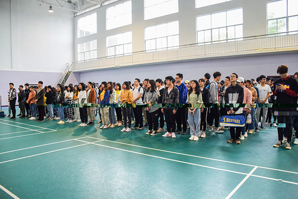 上午8點30分,“友誼杯”羽毛球賽正式拉開序幕。首先,我院學生會主席袁枭淘代表發言。他對全體運動員的參與表示歡迎,對工作人員的辛勤付出表示感謝。同時,他也希望通過這次比賽,能增進部門之間的友誼。緊接着,運動員代表曾成進、裁判員代表唐俊龍先後宣誓。最後,由團委第一副書記張鑫宣布比賽正式開始。