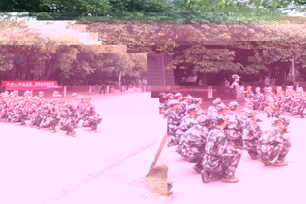 太陽底下,同學們在教官的監視下站得筆直筆直的,個個昂首挺胸,教官響亮地說:“大家站好了,不舒服的打報告......"新生們在訓練場地一動都不敢動。短暫的休息時間對他們來說是多麼幸福的時刻。