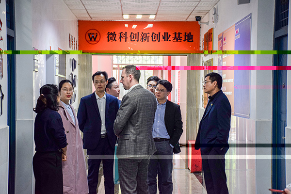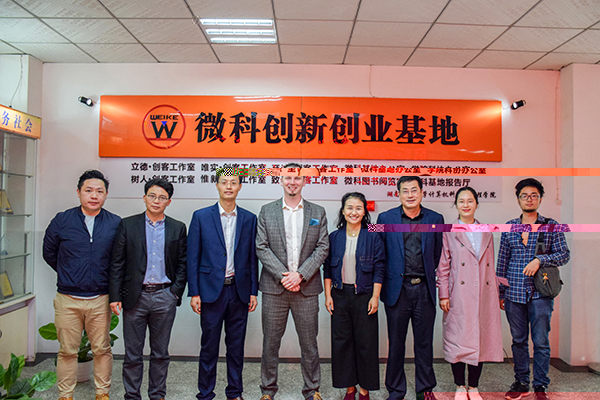 4月22日上午9點,英國創新創業教育者學會主席Jon Powell一行莅臨我院微科基地,在我校招就處處長蔣利平、副處長李友橋、指導科科長何佳振,國際交流處老師楊慧以及我院黨委副書記周筱芬,輔導員老師蘇俊銘、劉田的陪同下,視察調研了微科基地的發展及目前的管理情況。