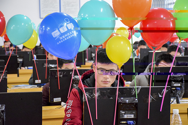 據悉本次比賽曆時5個小時,全校共210位選手參賽,比賽評分由我校網絡提交評判系統給出。比賽開始之際,參賽者們屏息凝視,蓄勢待發。比賽過程,他們認真思考、沉着應戰,鍵盤的敲擊聲此起彼伏,比賽緊張而有序的進行着。伴随着鐘表跳動的是一個又一個彩色氣球的升起,榜上的排名也不斷變動着,看似平靜的背後是參賽者們知識和思維的激烈碰撞。