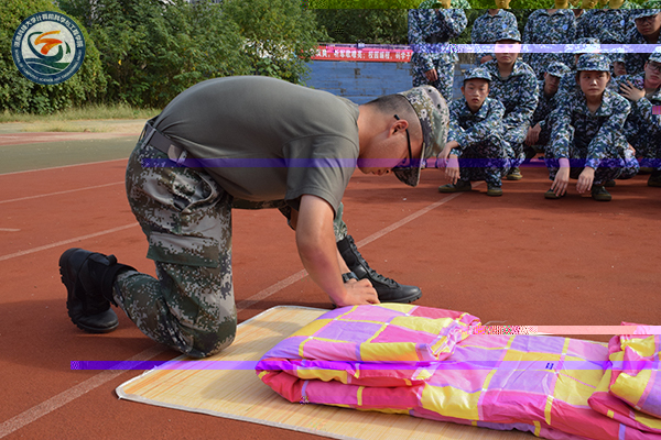 “被子三分疊,七分修”,鋪平、壓實、翻折、摳角、捏線……9月20日下午炎熱的訓練場上出現了這樣的聲音,走近看是教官們在悉心地講解疊被子的步驟與基本要領,汗珠順着帽檐滴下,堅定的聲音響徹整個田徑場。轉眼間,一個整齊的“豆腐塊”映入眼簾,成為軍訓場地上一道亮麗的風景線。