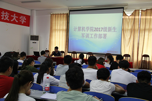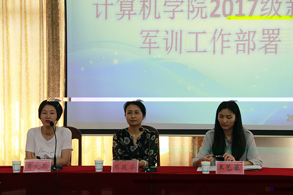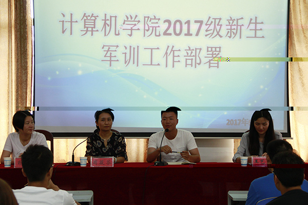 9月30日中午12點30分,計算機學院于逸夫樓108室召開2017級新生軍訓工作部署大會。院黨委副書記周筱芬,學工辦負責人肖愛軍,輔導員老師王藝蓉。全體教官、2017級新生助班及全體學生會幹部與會。會議由肖愛軍主持。