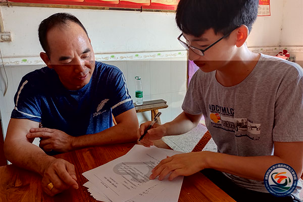 永州市祁陽縣合洲村,志願者正與工作人員完成問卷調查