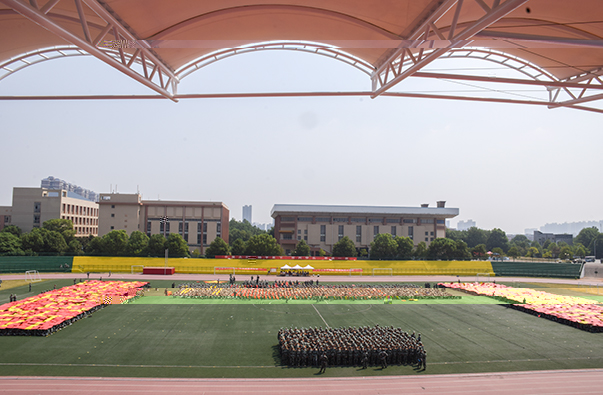 當嬌豔的晨曦溫暖地撫摸着大地時,那一抹抹動人的墨綠色從不同的宿舍湧出,彙聚成田徑場上綠色的海洋。輕柔的晨風散發着充滿青春活力的氣息,我院2019級新生整齊地穿戴軍裝挺立在訓練場上,迎來了他們軍旅生活中的訓練項目——擺字。