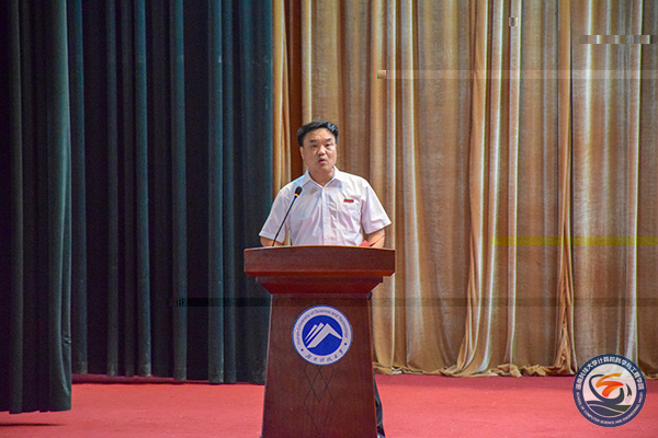 随後進行入學教育大會。首先是安全教育,我校保衛處處長朱理哲從人身安全和财産安全兩個方面切入,結合近年來發生在大學校園的各類詐騙真實案例,指導新生在今後的學習和生活中提高自身安全意識和應對能力。