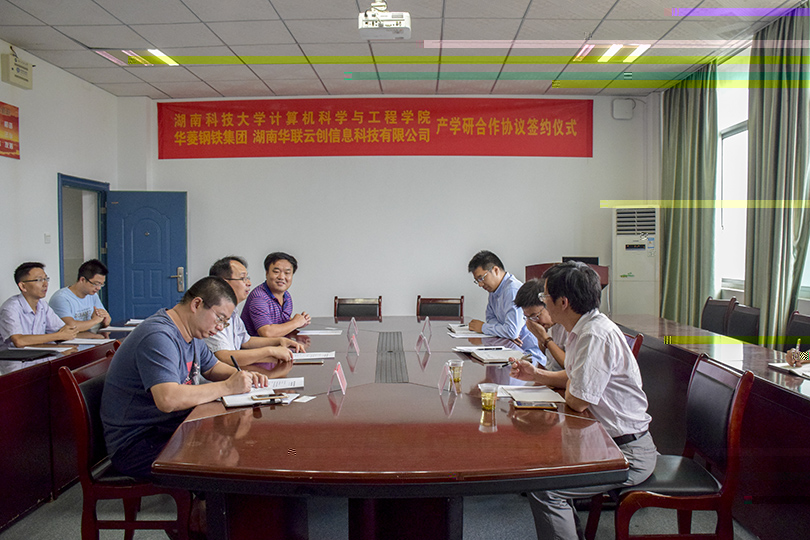 9月18日上午9點,9月18日上午9點,我院與華菱鋼鐵集團湖南華聯雲創信息科技有限公司(以下簡稱華聯雲創)産學研合作協議簽約儀式于逸夫樓210會議室舉行。華聯雲創總經理陳展、項目與研發部部長楊黔、董事與運行總監甯智明,我院院長劉建勳、黨委書記劉紅陽、副院長周棟及廖璟等部分學院博士出席。儀式由劉紅陽主持。